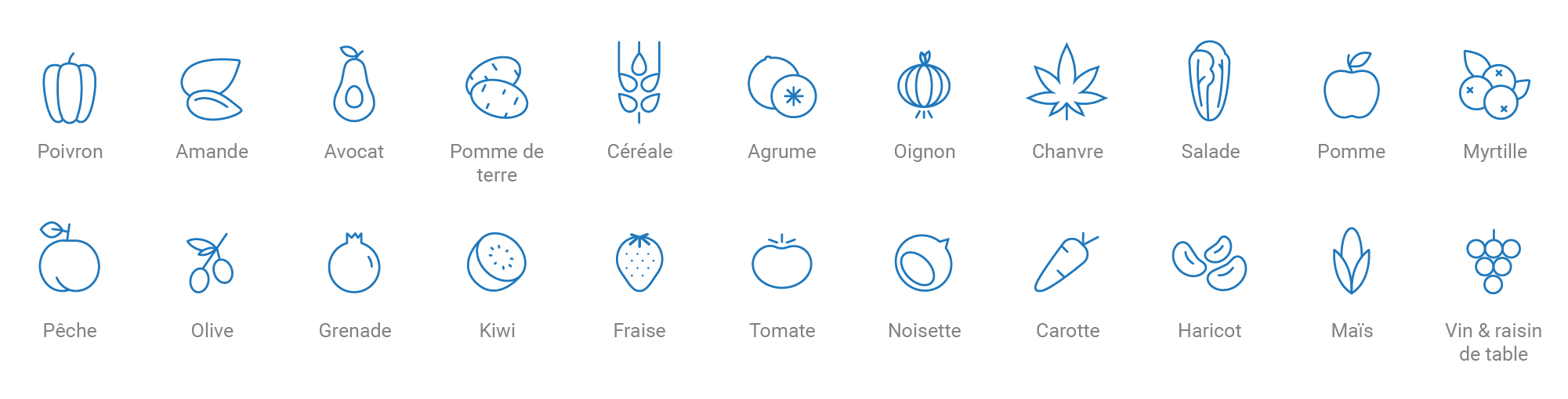 De l'amande aux pommes de terre, les modèles de Crop Advisor prennent en charge de nombreuses cultures et variétés.