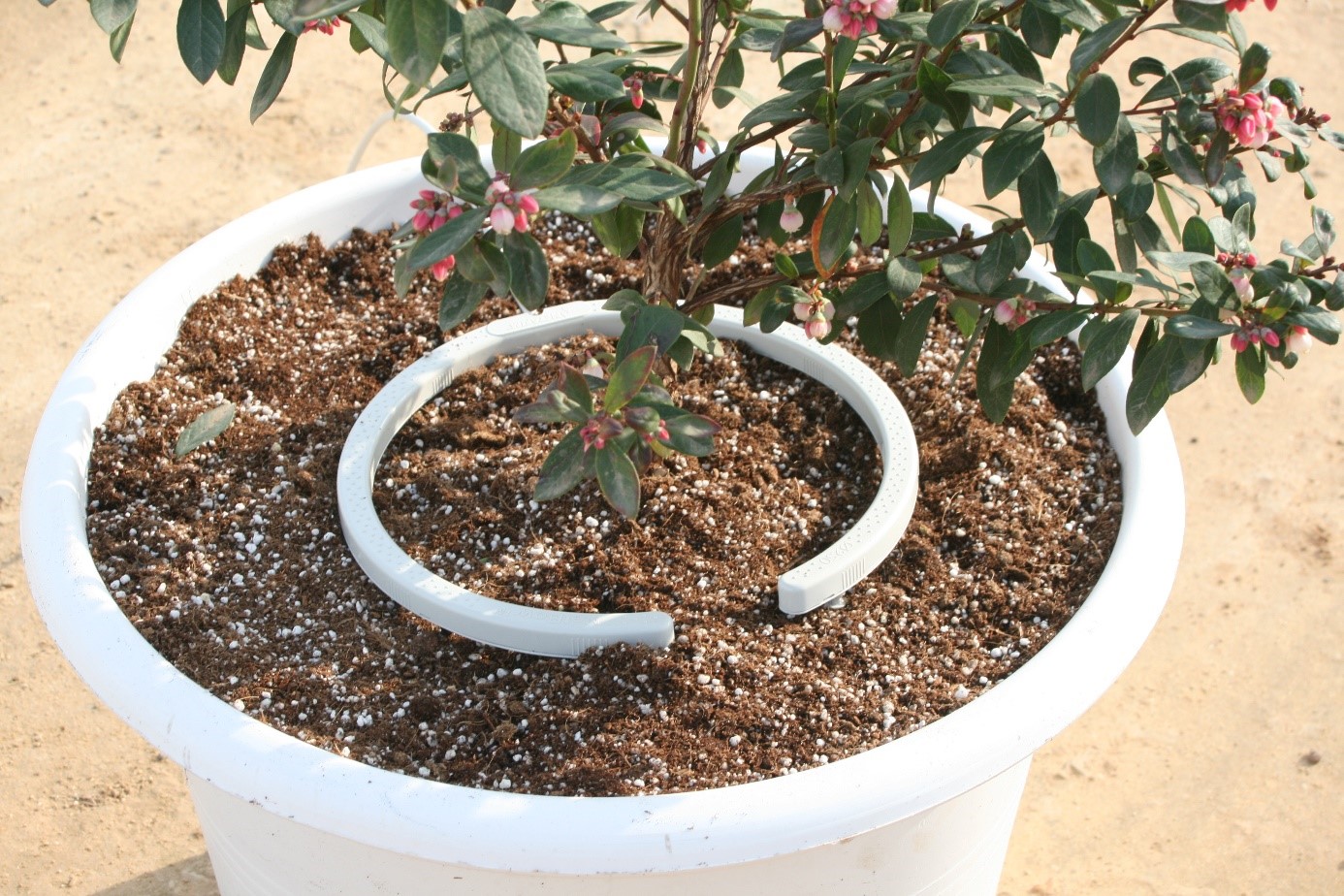 Pour les cultures en pot, le NetBow™ ou les systèmes d'araignée assemblés sont utilisés pour fournir une distribution uniforme dans l’ensemble du pot. Ces solutions sont particulièrement adaptées aux cultures exigeantes comme la myrtille où chaque détail compte pour créer un environnement de croissance optimal.